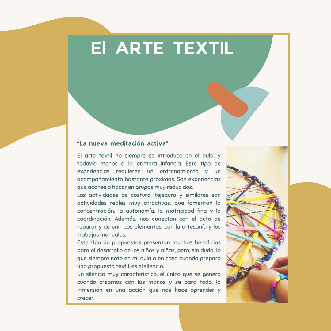 En esta cápsula encontraréis una gran variedad de experiencias textiles donde se trabajan diferentes técnicas. El recurso incluye, 10 experiencias artísticas diferentes, que fomentan la observación y la creatividad. Además, también hay una compilación de materiales, consejos y artistas que puedan inspirar vuestras creaciones.